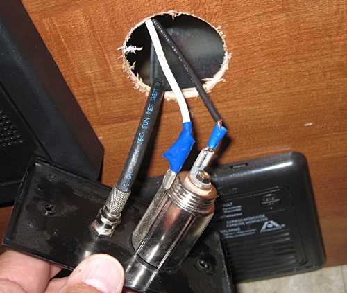 The trailer came with a cable TV and cigarette lighter socket combo. The wiring to the cigarette lighter looked like something I did when I was in third grade. One of the spots of exposed wire was pretty close to the tin wheel well. It would be a little tricky to start a fire with 12V, but the blown fuses would get old.