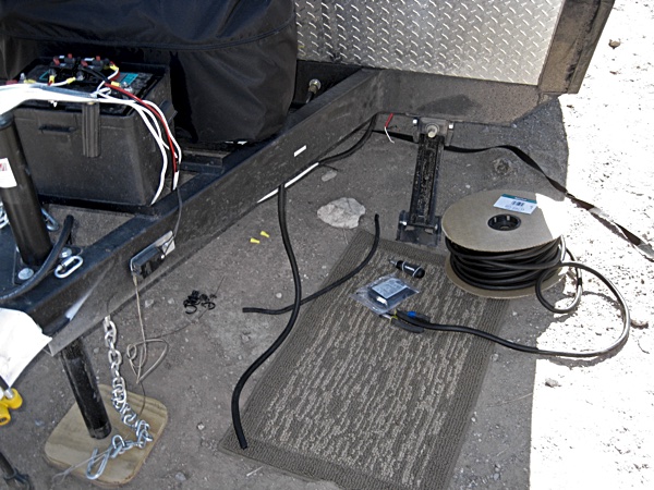 This is the emergency brake switch. If the trailer comes loose from the car/truck the cable on the left, which is attached to the car/truck, will pull a plate out of the switch and the electric brakes on the trailer will engage. The only problem I saw was that the wires to the brakes ran under the tongue. If the trailer is skidding along, because it disconnected from the car/truck what is the most likely part of the trailer that will be grinding on or be close to the ground? The tongue. I decided to reroute the wires over the top of the frame, instead.