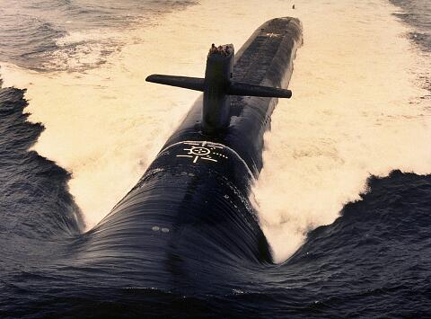 Above is the USS Ohio on the Hood Canal near Bangor Submarine Base in Washington state, USA.