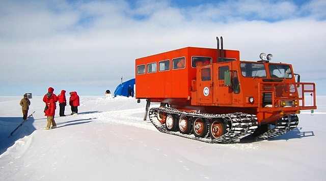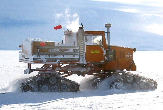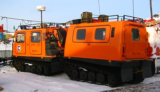 A Hagglund. Apparently these are designed to float if you should happen to break through the ice. They have hatches in the roof to escape through.