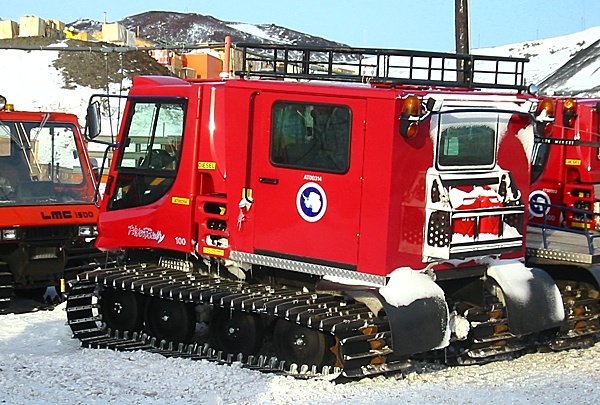 A PistenBully. Very popular with the biologists that make a lot of day trips from McMurdo and that have to haul around a lot of gear. Very manuverable. You can do doughnuts on a dime. Not that we did that or anything.