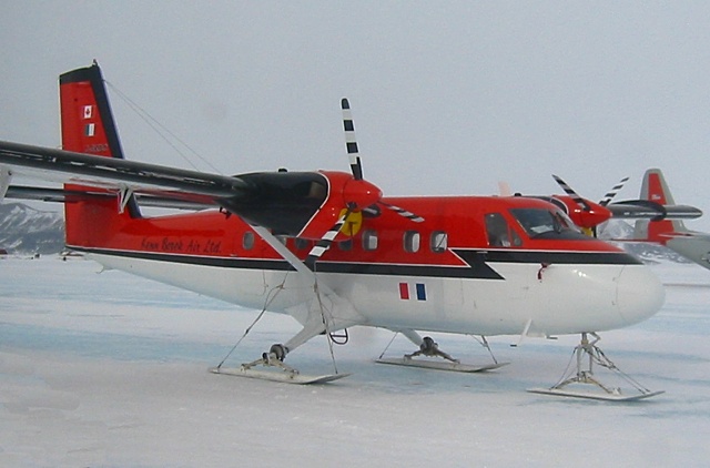De Havilland DHC-6 Twin Otter. They were owned and operated by the Canadian company Kenn Borek Air Ltd. These planes bounce back and forth between the Arctic and the Antarctic depending on the season. They were used for all of the short missions between places like McMurdo and camps in the middle of nowhere. They didn't need any runway, but just a reasonably flat place to land.