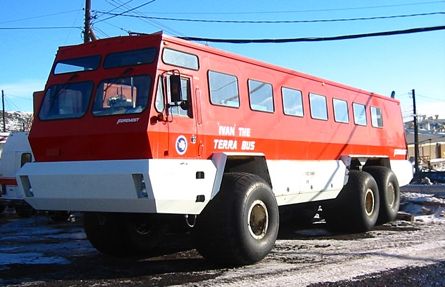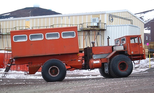 This is 'Ivan' The Terra Bus. It was used mostly for hauling people to and from the ice runway. It had really fat tires so it could make it across the transition from island to sea ice that always gets pretty mushy as the summer goes on.