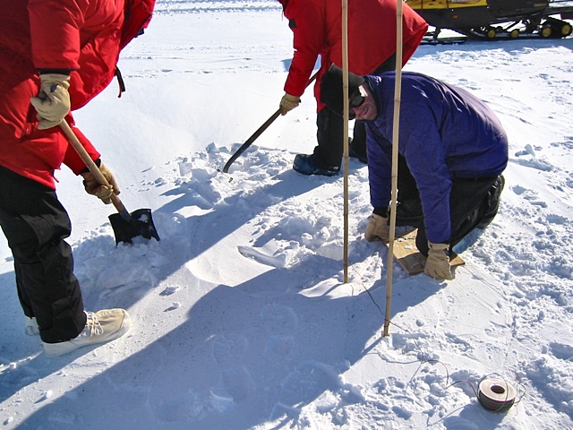 In order to get all of the energy from the explosion to stay in the ground, instead of shooting out the top of the hole, you had to plug the hole back up once the explosives were lowered to the bottom. The usual method was to fill the hole back up with snow. If it was a shallow hole then it didn't take much, but if the hole was 60 meters deep (the target depth for some portions of this experiment) it took a lot of snow and time!