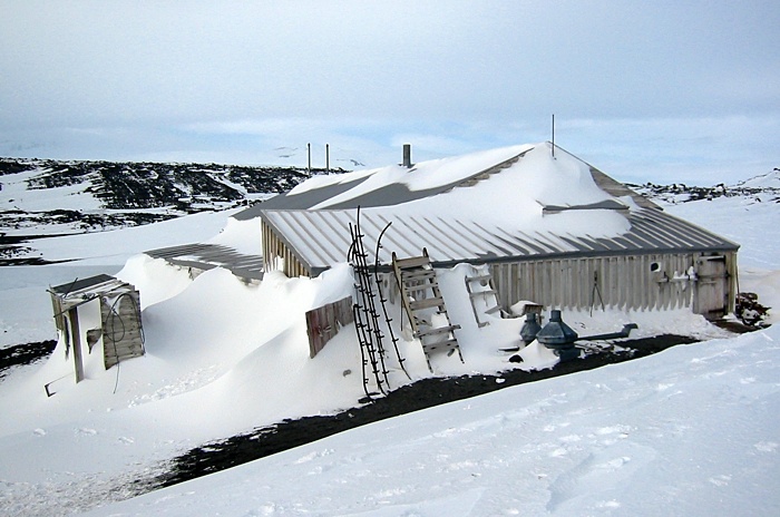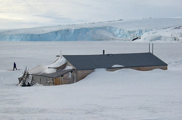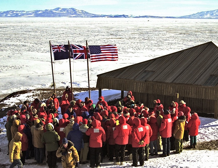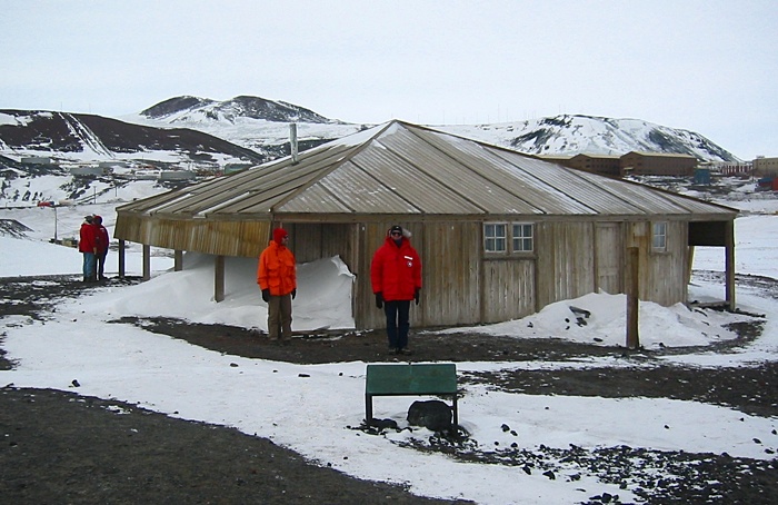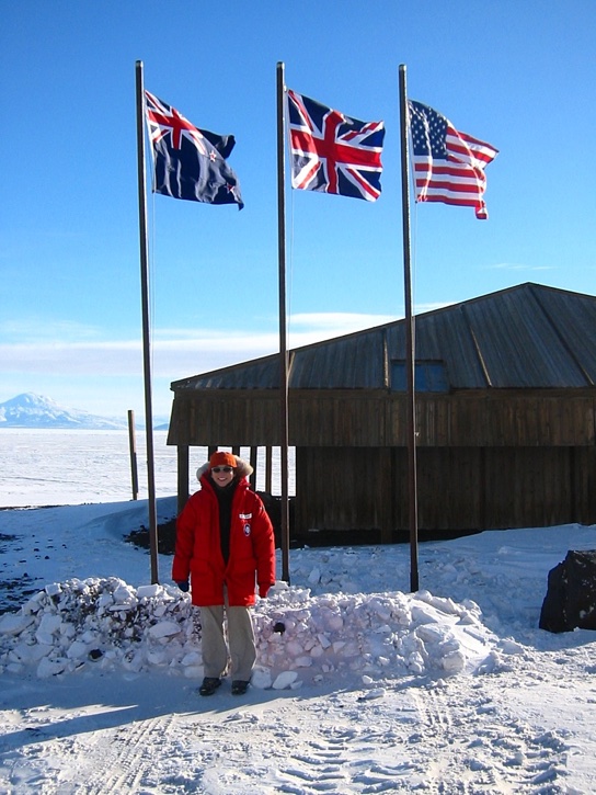 Above is Maggie Benoit of Penn State University in front of Discovery Hut in McMurdo at a ceremony that was commemorating the 100th anniversary of the beginning of Robert Falcon Scott's first expedition to the South Pole on November 2, 1902. After the ceremony the British flag was taken down, sent to South Pole Station, then returned to McMurdo to complete the journey that Scott was unable to finish. He failed to reach the South Pole on the attempt, but managed to go further south than anyone ever had and was able to gain valuable information on what it would take to reach and return from the South Pole which he failed to accomplish ten years later.