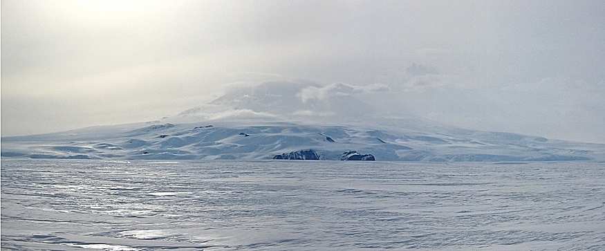 A ghostly Mt. Erebus from along our route near Cape Evans.