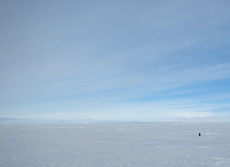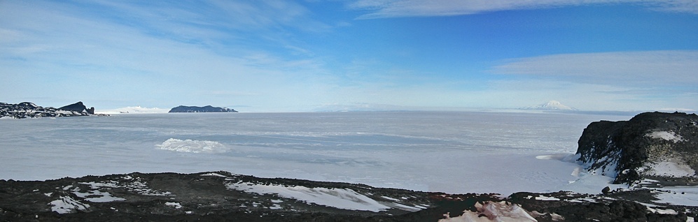Blue Lake in front of Shackleton's Hut at Cape Royds. Maybe. I couldn't make out from maps if this was the right body of water or not. The Transantarctic Mountains are in the background across the ice shelf. That I'm sure of. Cape Royds is about 35 kilometers from McMurdo.