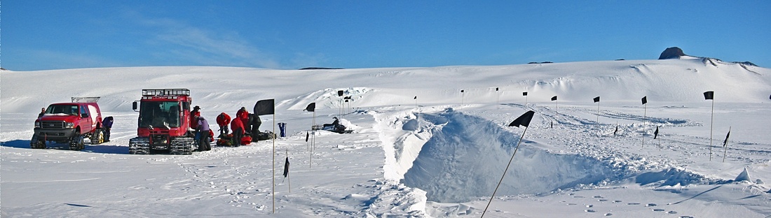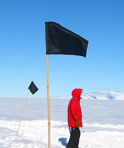 There must be hundreds of thousands of bamboo flag poles in Antarctica. That's probably going to drive some paleontologist mad a few million years from now. Different colored flags on those poles have different meanings. A flag pole with a black flag indicates that something about the area is dangerous. One of the dangerous things that could be in the area are crevasses. Since our journey in Western Antarctica would take us through areas where crevasses lived we did some training before we left McMurdo on the various techniques one must know to extract a person should they fall into a crevasse. It happened to Scott and his gang up to many times per day.