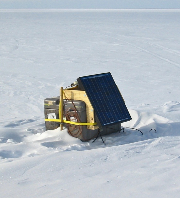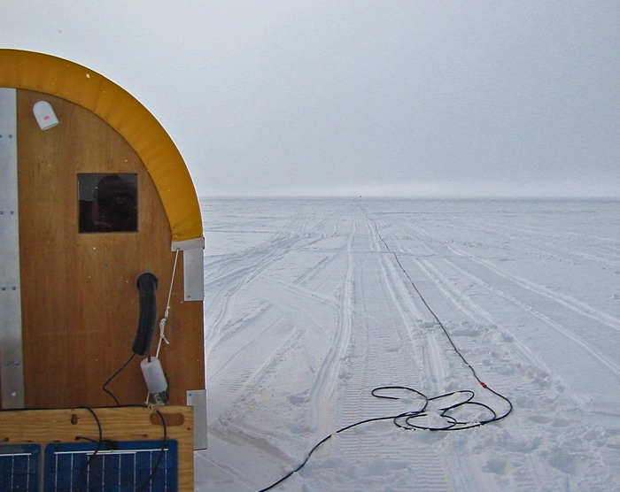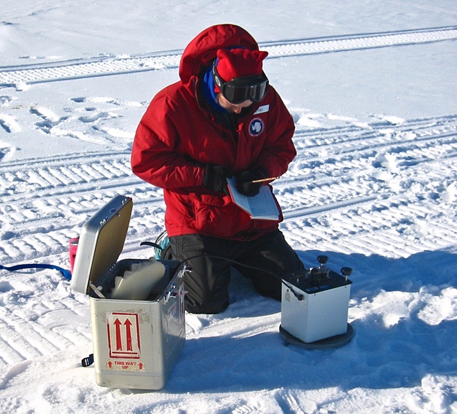 Reftek recorders were set out here and there and were left anywhere from days to weeks to record icequakes. From time to time (a lot of times because of people doing things like moving around or setting off explosions) layers in the upper regions of the ice collapse and cause icequakes, or more correctly, firnquakes. The layer of ice below the top layer of snow is called the firn ice layer. Sensors and recorders like the one above were set out with solar panels for power at Onset-D and in a couple of the other areas where we were working to record these events. The ice in the layer has room to collapse because of the trapped air bubbles. The surface snow is compacted until it becomes ice with bubbles, then the compaction continues until it becomes nothing but ice below the firn ice layer.