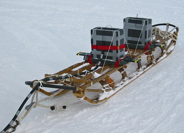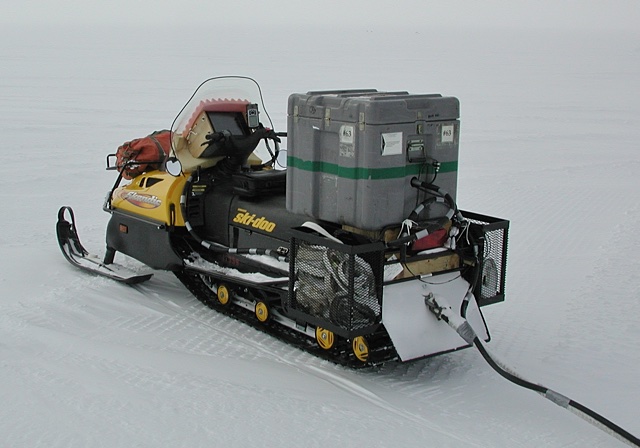 The University Of Texas at Austin sent along a portable RADAR system that was pulled behind a Ski-Doo to map the ice around the areas where the reflection and refraction studies were taking place. The RADAR showed different density layers of ice, where sections of the ice had collapsed and caused shifts in the layers, and where there were buried crevasses. Most of the work in this area of Antarctica during the previous 2001-2002 season involved the use of RADAR to see what was going on.