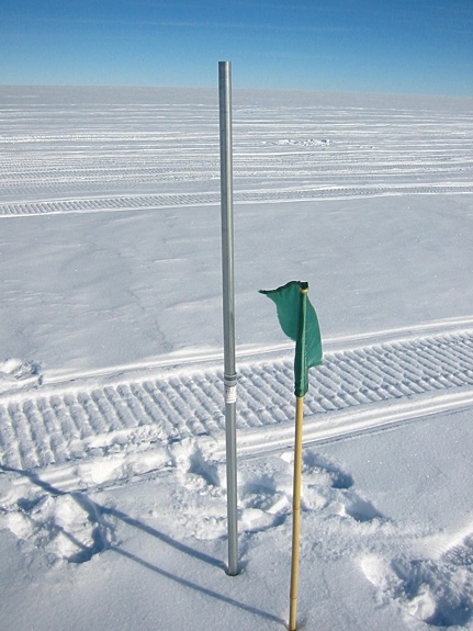 We also measured the GPS positions of poles left to drift with the ice streams by projects in earlier years.