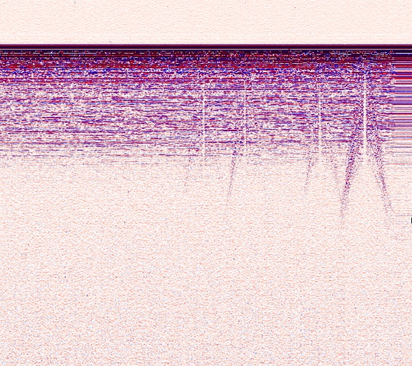 When fed into a processing program the data from the radar system produced images like the one above. The surface is at the top with increasing depth as you go down. The gaps that look like cracks are just that -- crevasses -- that did not extend all of the way up to the surface.