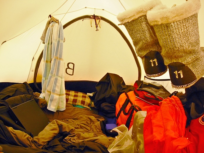 First you needed a place to sleep and get out of the cold. We had small mountain tents for one person, larger Scott tents that would fit two people, and a couple of Weatherall tents, one for the main camp tent (where we all gathered to eat, drink, and be warm), and the other for a science equipment tent.