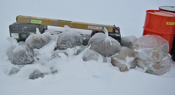 100% of the paper, plastic, electrical wire, wood, used tea bags and anything else we didn't want was bagged and dragged along with us, or left for the Twin Otters to pick up and carry back to a camp like Onset-D. All of the trash on the continent is recycled and/or hauled off of the continent from McMurdo by ship at the end of the season.