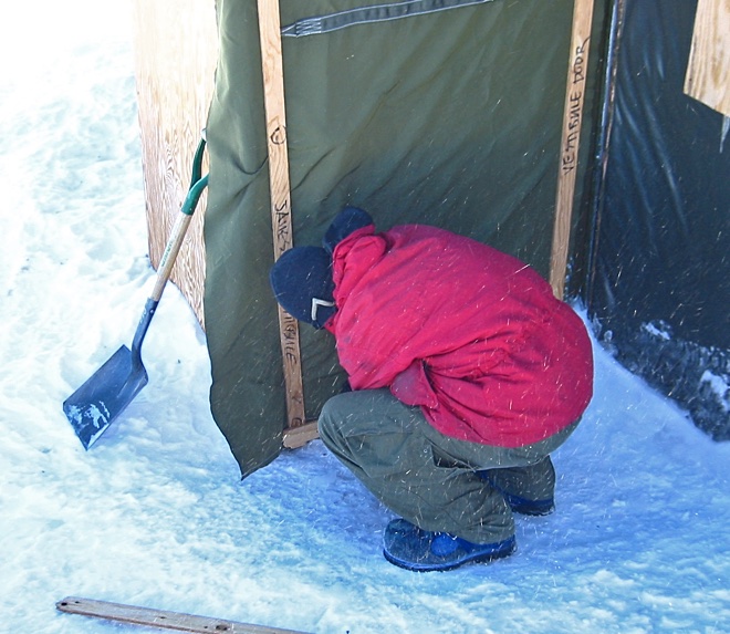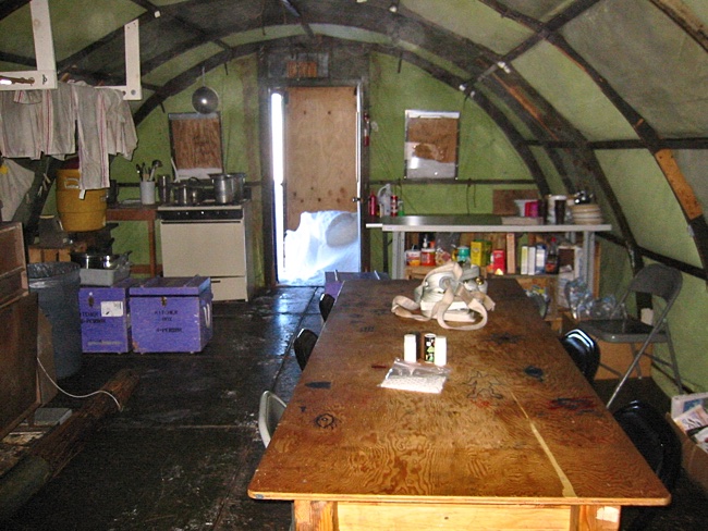When we got there the camp was unoccupied. The last scientific project, and all of the camp staff, left shortly after Thanksgiving 2002 at about the same time that we left Onset-D on our road trip. The door to the Jamesway had been locked and sealed up and we had to go in through the hatch in the top of the vestibule to get in and unlock it. We weren't sure who they thought was going to break in when they locked it, or why they thought a locked door would keep someone out of a canvas tent.