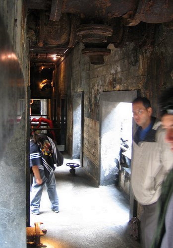 Back topside the Museo de la Salmuera is part of the park and is made out of the processing ponds and rooms that were used to extract the salt from the ore. You walk through the hallways and rooms with a guide past many different displays that depict the steps used to produce salt from the mine and the history of the mine. The production process, in a nutshell, is that the ore (rock and rock-hard salt) is crushed and mixed with water. The salt dissolves into the water and is then collected when the water is evaporated away.