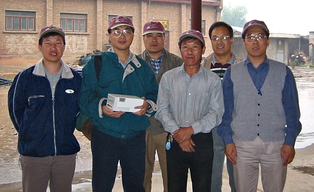 Above is a picture of the group of brave souls that survived the whole trip through the Qinghai province along with one of the project's principal investigators. From left to right they are Rong'yi QIAN, Wenjie JIAO, Zhong'tao LI, Guang'cai CHEN, He'ping SU, and Hai'ou LI. Rong'yi was an instructor at the Institute of Geological Sciences. Wenjie was one of the the principal investigators for the project. He had to leave after the installation of the first station to work on another project in the Hunan province so he missed out on most of the fun. Zhong'tao and Guang'cai were our drivers. They drove a long way and did a really good job of it. He'ping worked for the Institute of Geology in Beijing. Hai'ou was a student at the Institute of Geological Sciences in Beijing.
