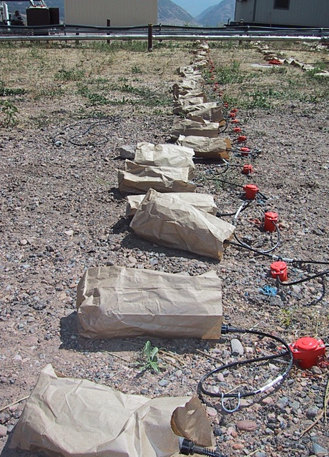 Below is another view of the array of geophones and recorders.