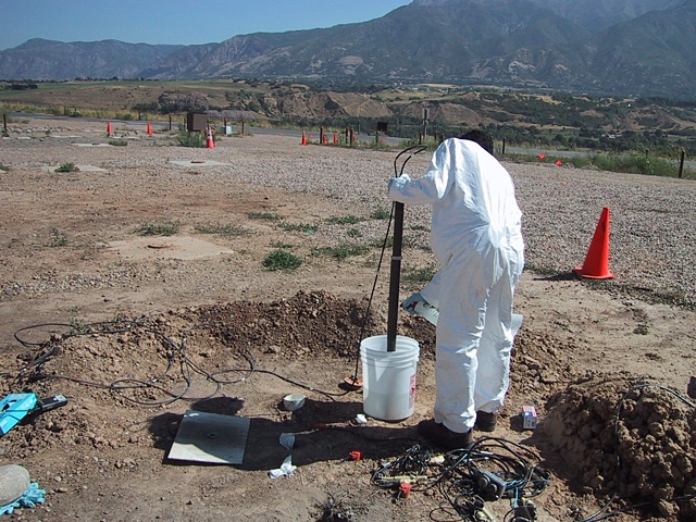 Since the area was contaminated with TCE, the geophones that were placed down the wells had to be decontaminated at the end of the experiment.