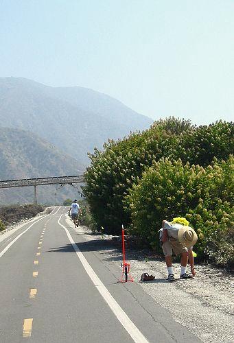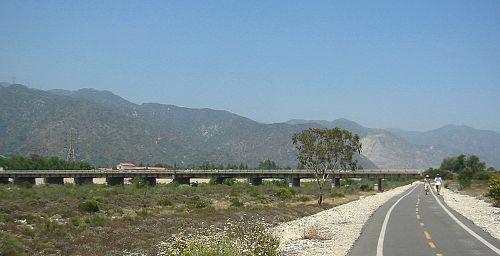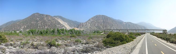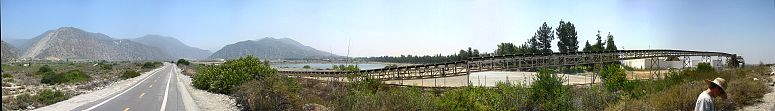 Behind us were the San Gabriel Mountains. That structure crossing the road was a conveyer belt that ran all the way from the mine where the side of the mountain is scarred, over to some processing and loading equipment.