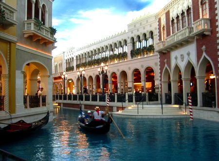 This isn't outside. It's inside. They have an actual canal, complete with gondolas and singing pilots, running throughout the building. People that have been to the real one say that this Venice smells better.