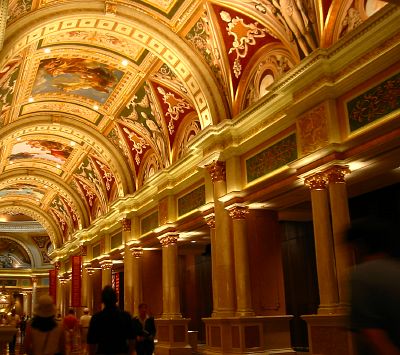 One of the entryways to the Venetian is below. It looks nice, but a lot of the "detail" was actually just painted on, and was not really objects like they would be if this really had been Venice. I thought that was kind of cheap. I guess a couple of billion dollars just doesn't build the same kind of building that it used to.