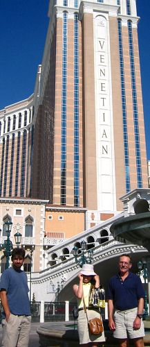 Since we had a part of the afternoons off we did get to do a bit of sightseeing when we could keep ourselves awake. Below are Adam Hemsley, Hyun-Mee, and Jim in front of the Venetian Hotel Resort Casino, and shopping mall, and water spectacle, and performing arts center, and, and, and...