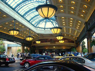The entrance to the Bellagio Hotel Resort Casino.
