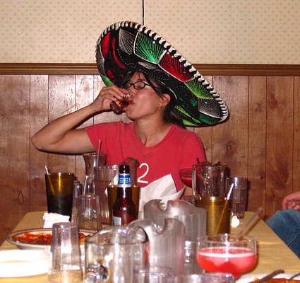 Below is Kelly Grijalva that also celebrated her birthday while we were in Winnemucca. It was her 21st birthday, so she, with no encouragement from us, of course, imbibed the usual kinds of things that one does when they turn 21. Here she is drinking a shot glass full of iced tea. She got to keep the hat.