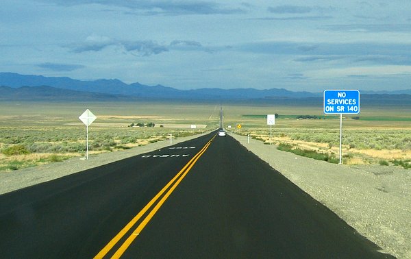 About 30 miles north of Winnemucca past places like Bloody Run Peak and Paradise Hill, state route 140 turned west off of US95 and headed out across the desert. This was how we got back and forth to the beginning of our work area for the first handful of days. The sign wasn't kidding.