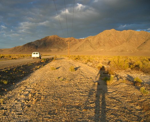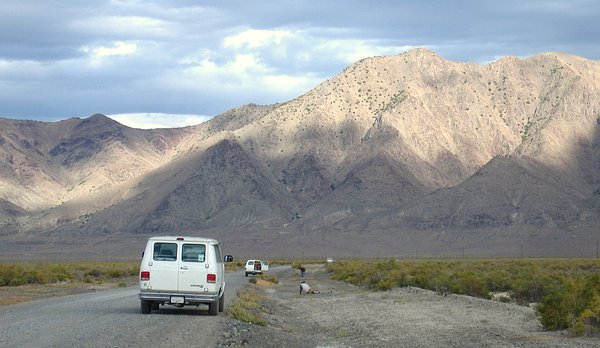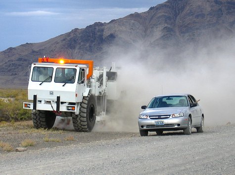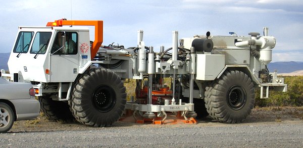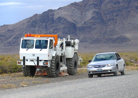 In addition to the large explosions the other source of seismic noise for this experiment was not my rental car on the right, but the vehicle on the left. Trucked all of the way from Texas its purpose in life was to shake the ground at any speed from very low frequencies to hundreds of cycles per second.