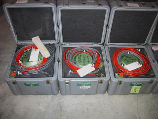 Most of the equipment is shipped in plastic shipping containers. Some containers are sized and filled with foam padding for use with only certain pieces of equipment. Above is a photograph of three sensors returning from a project in China.