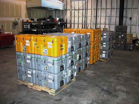 Above is a photograph of four of the six pallets of equipment that was sent out for an experiment in the San Francisco area. You can read more about that experiment here.