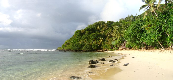 A couple bays east of Pago Pago was the village, beach and bay of Alega. Most of the land in the area was owned by one family and, not by accident, it was one of the least populated bays on the island. The owners liked it that way. Tucked away at one end of the bay was the world famous (i.e people from all over the world have been there) Tisa's Barefoot Bar. It was owned by Tisa who grew up in the village.