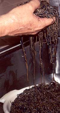 During the few hours all of this is all going on the Samoan coastlines become crowded with Samoans armed with homemade nets, lights, and buckets. The next day automatically turns into a feast day. Fried, baked, sautéed, or baked into a loaf the palolo are. Below is a picture of the delicacy. They had a fair harvest just before we arrived and we were able to have some of the palolo cooked with onions and coconut milk one dinner at Tisa's. It was pretty good stuff.