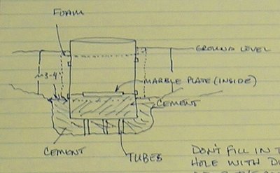 It took about ten of the tubs in the picture below of cement to get our job finished. I helped by poking at the wet cement with a stick after it was poured into the hole. It's the only kind of thing I'm qualified to do.