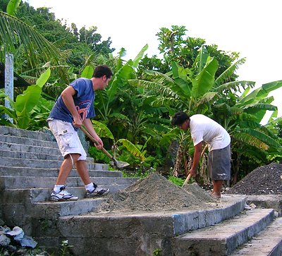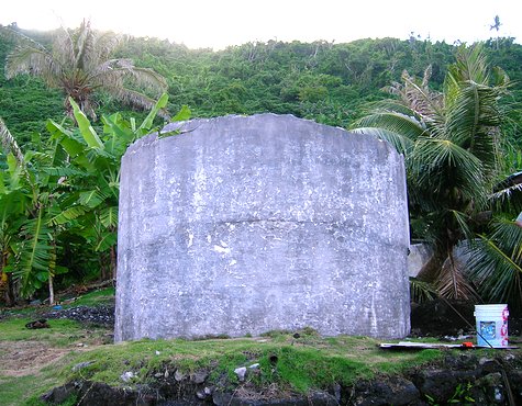 Ta'u, being the battered little island that it was, had a few abandoned things sitting around. Stanley, the pilot partially from Ofu, had a mother, Moki, that lived near the airport in Pago Pago. She had a brother that still lived in -- imagine this -- Fiti'uta, Ta'u. This was just another typical sequence of events in the Samoan islands. Matt pieced all of this together on an earlier trip. The brother of Moki, Leoso, tended the land that belonged to his family and was rebuilding the family house that was heavily damaged in the cyclone of February 2005. In the back yard of that house was an old cement cistern. While not perfect, from a seismic point of view, it became our prime candidate for a station location.