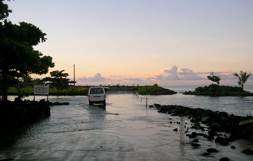 When the tide was in you just had to slow down here and there. This was the same place (but coming from the opposite direction) as the picture above in the village of Safai which was in the northeast corner of Savai'i.