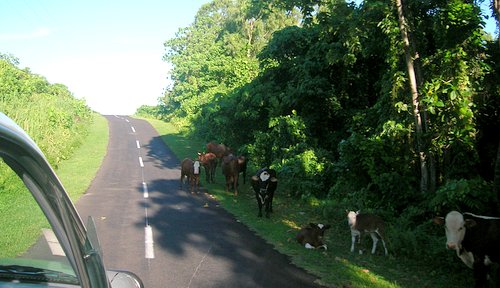 Samoa, in general, and Savai'i, in particular, had a whole different feel to it from American Samoa. The favorite pastime of the driver as we zipped back and forth across the north coast of the island was dodging the occasional pig or cow wandering along the side of and darting out across the road. The animals in American Samoa were all fenced in.