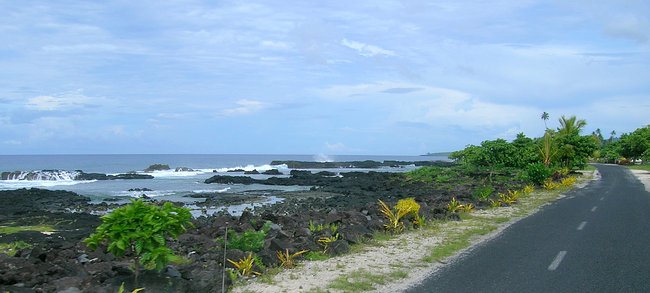 An overnight pit stop in Apia, and the next day we were off to the Big Island -- of Samoa. The island of Savai'i. It is the westernmost, and oldest island of the chain. Below was the coast near Falelima in the southwestern part of the island.