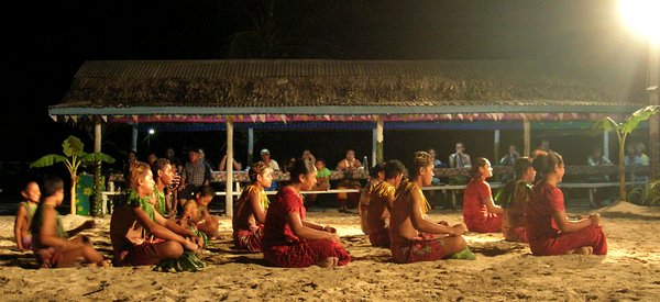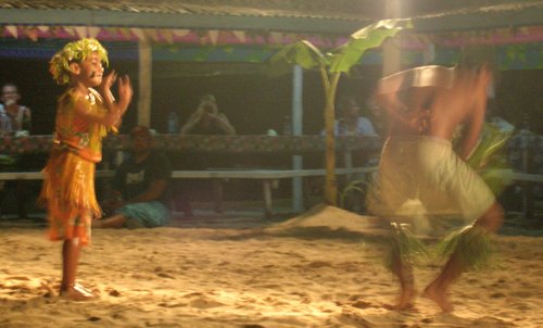 All of the people that worked at the resort were from the same extended family. On Wednesday evenings, and other special occasions, the folks had or put on (I'm not sure which) a fia fia. This was a traditional Samoan...party.