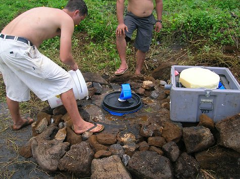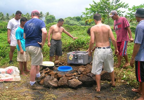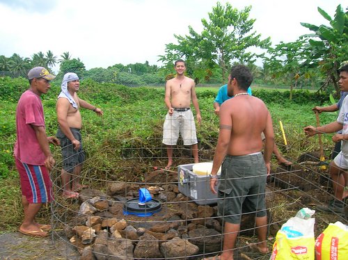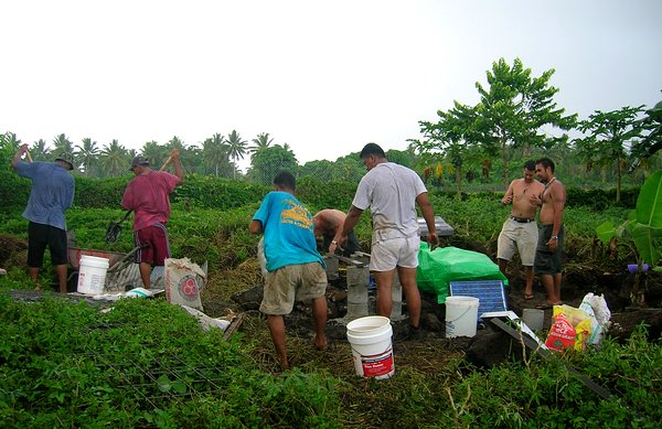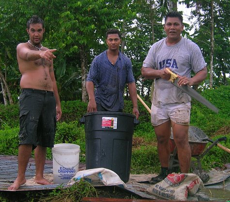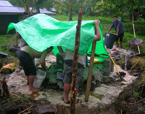 It didn't help a whole lot, but the tarp at least kept the wet cement from washing away while we finished spreading it around. I guess if you didn't work in the rain in Samoa you wouldn't get much done during some portions of the year.