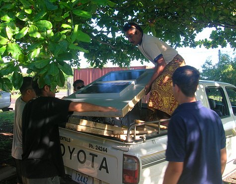 Another one of those artistic shots this one of Veli trying to hang on to the lid and keep himself from being thrown out of the back of the pickup as we bounced up the road.