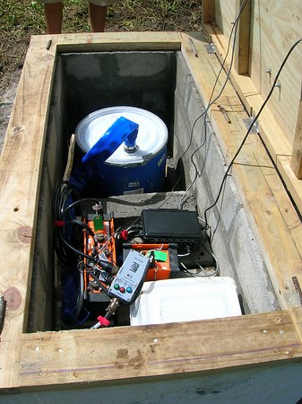 Snug as a bug in a rug as they say. There was plenty of room for the digitizer, battery and recorder. All of the equipment was up off of the ground and sitting on top of a layer of leftover bricks so even if there was a small flood the water probably wouldn't get to the electronics.