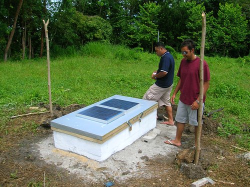 Sigh. The battery. Again. When I looked over the information from the station I noticed that it had rebooted at roughly sunup that morning. I unplugged the solar panels and the station shut down. The battery was dead and the station was running on the solar panels alone. Johnny ran down the hill and found a replacement from the same place we bought the replacement battery for the station in Maota. We were able to get our money back from the dealer in Apia for the two batteries we bought with us, but weren't able to use in Savai'i.