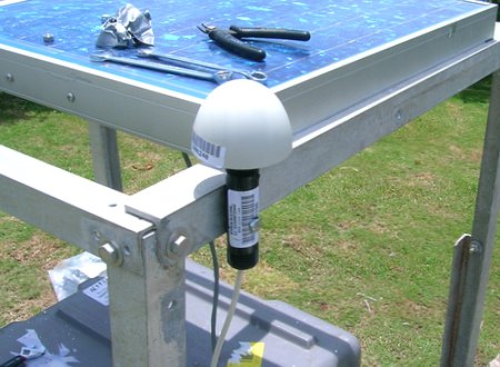 I replaced the duct tape that held the GPS antenna over night with a bolt to the solar panel frame