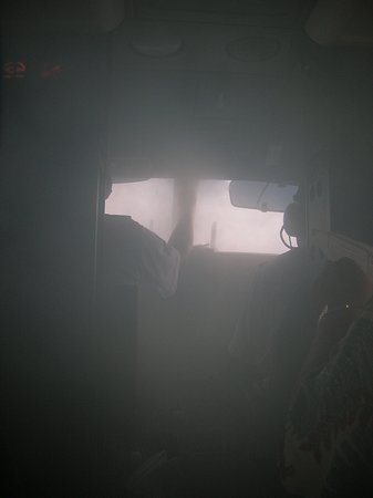 Airplane travel in the tropics can be a little different. Because of the extreme humidity the cabin will sometimes fill up with fog when the air-conditioning is turned on. It gives new meaning to local IFR conditions. I've run into this in several places over the years. I guess it's OK as long as the pilots can see. Of course by the time they turn the air-conditioning on you're in the air, so there isn't a lot to run into. It clears up after a couple of minutes.