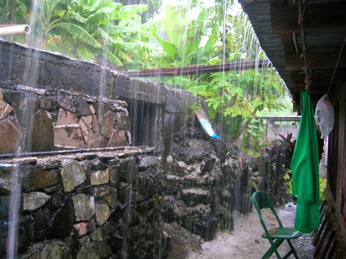 Open up the station box, check things over, download the data collected so far, fix any other problems, button things back up, kick back and relax until my flight back to Pago in the morning. That would have been about 45 minutes worth of work. It took about three and a half hours of dodging the rain with a little travel umbrella to get it all done.