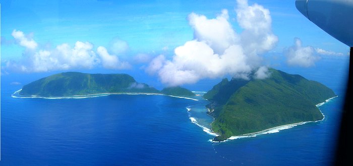 Below are the two major American Samoa islands that I didn't make it to on this trip. Ofu is on the left and Olosega on the right. They are connected by a small bridge. Ofu, with its beaches and reefs, is one of those places where you go to truly get away from the world. Unfortunately it is slowly being discovered by the world, so you'd better hurry, which, of course, totally negates the point of going there to relax and get away from it all.