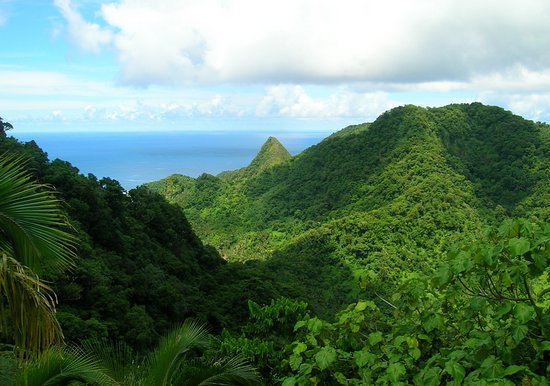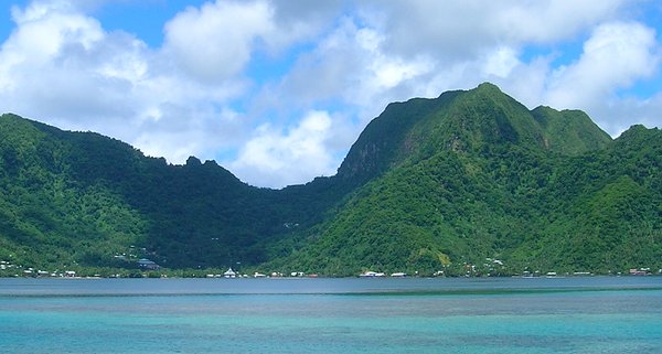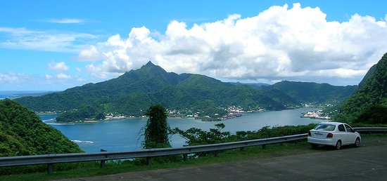 Afono Pass is the low point in the mountain ridge in the picture below. Mt. Piao (The Rainmaker) is the tall peak. From other angles it looked more like a wide shovel-like mountain, instead of a peak. It seemed to trap air currents blowing across the harbor from the left and squeeze the rain out of them, hence its name.